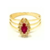 Anel Formatura com 1 pedra Navete de 3 x 6 mm e 12 pedras de 0,5 Pts