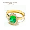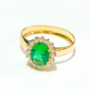 Anel Megan em ouro 18K, com 1 pedra oval natural ou sintética de 6X8 mm e 16 pedras de 1,5 Pts.