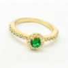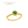 Anel Poesia em ouro 18K, com 1 pedra natural ou sintética de 4,0 mm, 14 pedras de 1,5 Pts e 12 pedras de 0,5 Pts