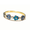 Anel Primavera em ouro 18K, com 4 pedras naturais ou sintéticas de 0,5 Pts e 25 pedras de 0,8Pts