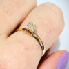 9 pedras naturais de 0,05pts ou sintéticas de 1mm.